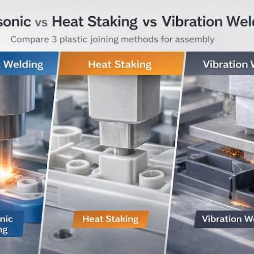 Compare ultrasonic welding, heat staking and vibration welding. Learn the advantages, limitations and best applications for each plastic joining method.